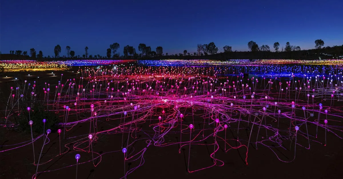 This is Wintjiri Wiru – meaning ‘beautiful view out to the horizon’ – a captivating show that brings to life a chapter of the ancestral Mala story passed down through generations of the Indigenous Anangu people. More than 1,200 drones paint the night sky above Uluru, the ancient sandstone monolith in Australia’s Northern Territory that holds deep cultural significance for Aboriginal peoples nationwide. It’s a spellbinding fusion of traditional storytelling and cutting‑edge technology, a mesmerising display of appreciation for Indigenous culture that is both respectful and innovative. Produced by studio Ramus in partnership with Voyages Indigenous Tourism Australia and the Anangu people, the custodians of Uluru‑Kata Tjuta National Park, the performance showcases their heritage exclusively to guests of Ayers Rock Resort.