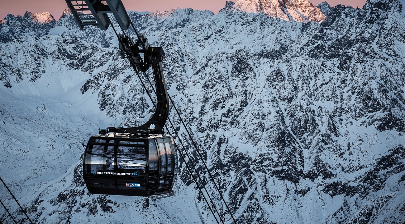 The evening’s culinary programme continues as we ascend in the ultra-slick cable car to the aforementioned Ice Q restaurant for the start of the Gaislachkogl Rally event. Fans of James Bond might recognise it as a location used in the film Spectre, which was shot predominantly in Sölden. Directly adjacent to the restaurant is the Bond-themed cinematic installation 007 Elements – a must-see immersive insight into the making of the film and the history of the Bond franchise.