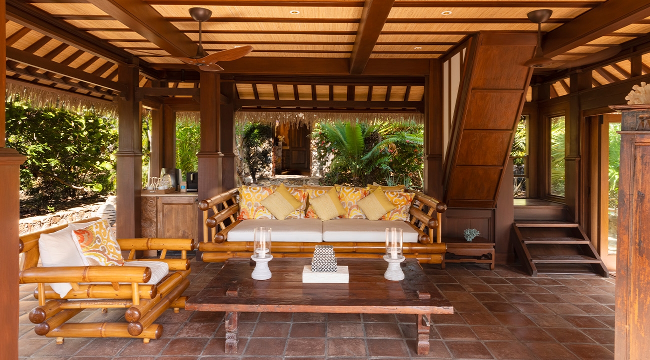 “It was very scary,” Richard tells me. “We all hid in the wine cellar as the wind howled outside. When we came out 14 hours later, there wasn’t a single palm tree still standing.” Now in its third reincarnation, the Great House remains the beating heart of the island. Perched on the island’s highest peak, it has 18 bedrooms and a breezy communal space with stone floors, a swinging day bed (dubbed ‘Richard’s office’, as that’s where he likes to do his emails), bamboo furniture and an indoor garden, all under dramatic ostrich-egg chandeliers.