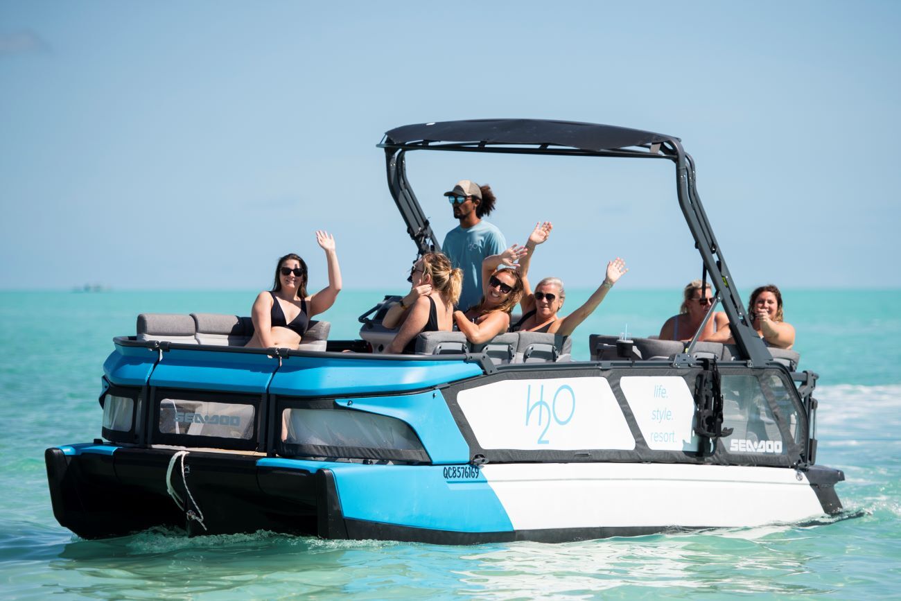 I’m quite content on the beach, but at a resort so well-equipped for aquatic adventures, it would be rude not to venture beyond the shoreline, so I haul a paddleboard into the shallows and join the fun. The water beneath my board is an otherworldly shade of turquoise, glinting and glistening like a blanket of thousands of tiny diamonds. I feel completely at peace as I navigate the calm waves, the buzz of activity blurring into a happy thrum in the background as I soak in the idyllic beauty of my surroundings. As I gaze towards the horizon, something else demands my attention: a stationary cargo ship obscured by a blanket of rust, which has become somewhat of a must-see for visitors to Provo. I’ve never been one to pass up the opportunity to visit a landmark, no matter how tarnished, so I paddle back to shore and swap my board for a larger vessel: H2O’s speedboat, which whisks us to the shipwreck in minutes. Our captain kills the engine and we float alongside the ship as he tells the story of how La Famille Express was dragged from its anchor for more than 12 miles by the winds of hurricane Frances in 2004.