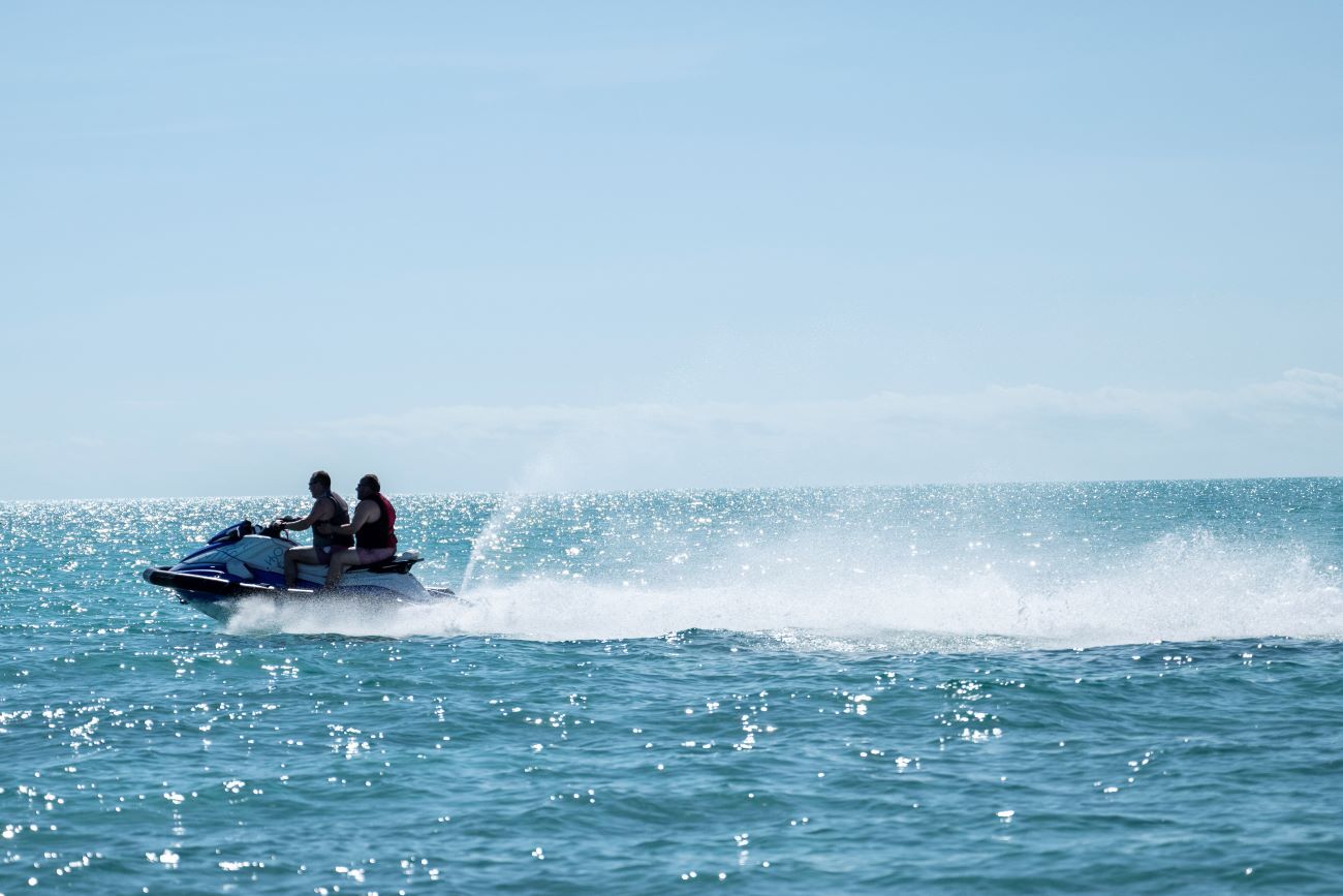 We plunge into the cool waters from our boat’s stern for a quick swim stop in the shadow of the ship, then climb back on board and head towards the shore. But before we’re back on dry land, there’s one more landmark we need to tick off: Captain Oak’s Tiki Bar. We clamber from the boat onto the floating wooden shack and are greeted by a small host of merrymakers perched at the bar and Captain Oak himself, who quickly rustles up rum-laced drinks to a lively soundtrack of reggae tunes. Admiring Provo from the water is a must for visitors, either during a trip to a floating bar or, if clients are keen to venture a little farther beyond the shoreline, from the comfort of a catamaran. We board Lady Grace – the luxury vessel that was christened alongside The Ritz-Carlton in Grace Bay – while the sun is still bathing us in its warmth, but we’re not sailing for long before the blue of the sky is replaced with balmy shades of pink and orange. As the sun gently dips below the horizon, we’re treated to free-flowing rum punches and fizzing flutes of champagne, which we enjoy alongside the beautiful passing scenery of Grace Bay. With a cocktail in hand, I contemplate another divine concoction: the outstanding natural beauty, high-octane activities and joyous spirit that combine to make Turks and Caicos special – a mixture I can’t seem to get enough of.