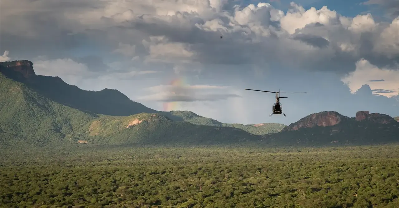 Glasses of rosé are poured from a cool box that’s magically produced from the helicopter, and a comfortable silence falls as we take in the immeasurable expanse of raw, unbridled nature spilling out in every direction below. In Samburu language, Namunyak means “place of peace” and, at the top of Ololokwe, I have found exactly that.