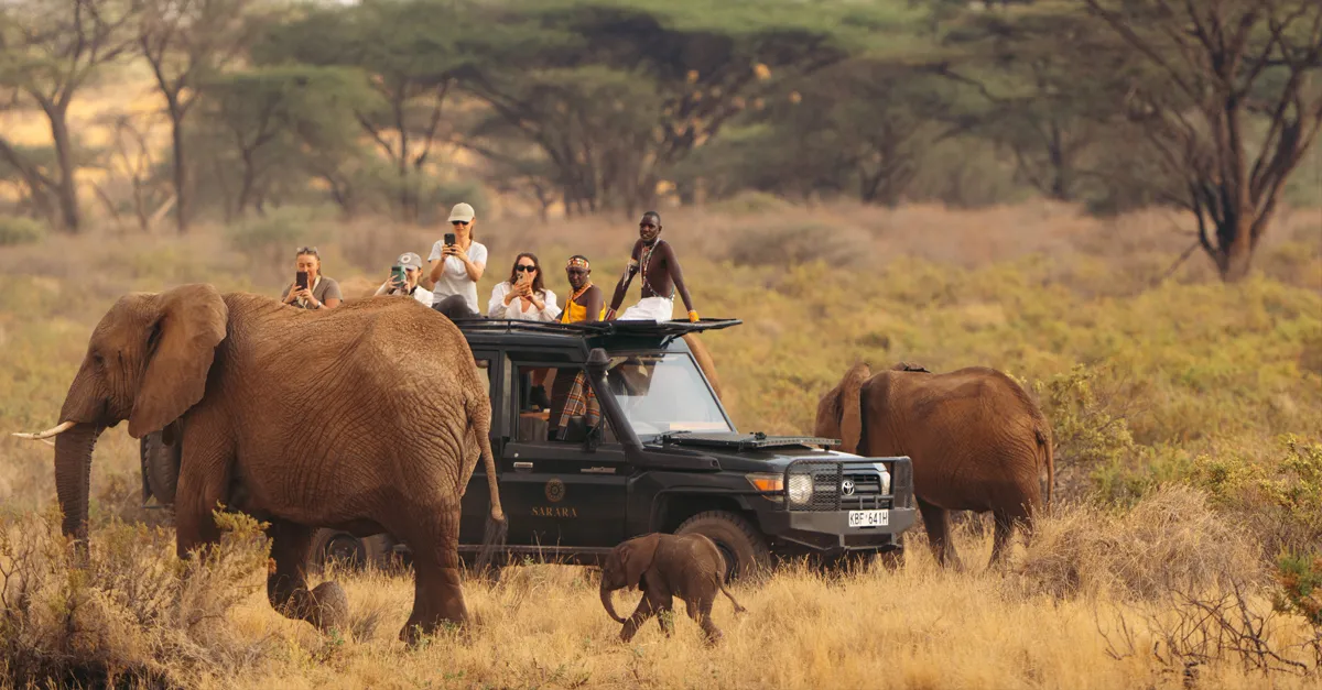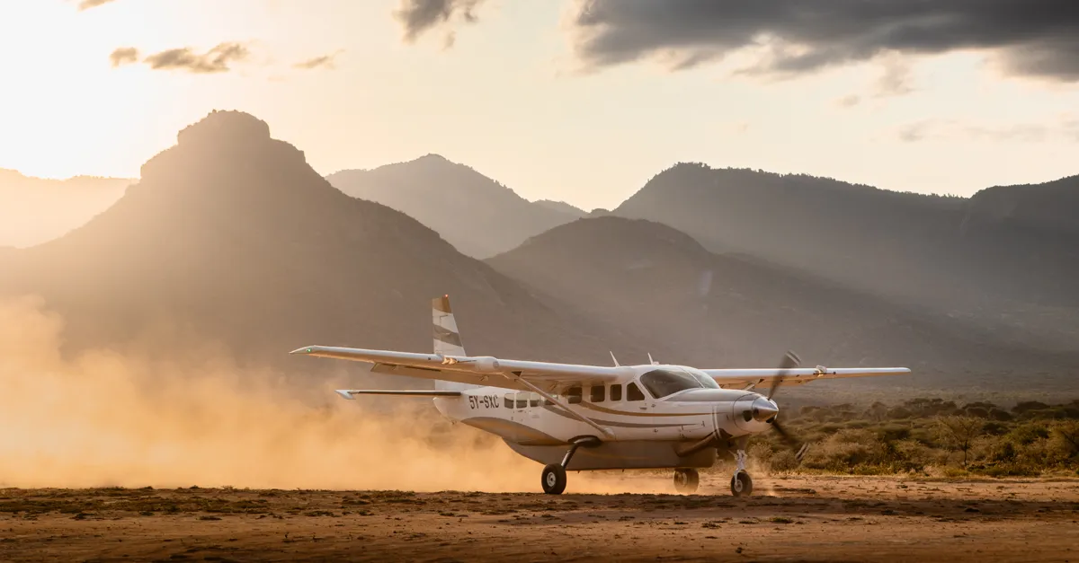 Travelling between remote parts of the Kenyan bush need not be as complicated as it sounds. For the first leg of our adventure from Nairobi to Namunyak, and onwards to the Maasai Mara a few days later, we’re transported in style by Scenic Wilderness, a partnership between two charter operators that connects the capital, the Mara and northern Kenya. For both flights, a literal red carpet is laid out, water and snacks are provided in the pockets of each huge leather seat, and the pilots are keen to answer any questions. When it’s time to leave the Mara behind, we travel with charter company and specialist flying safari operator Scenic Air. This means our flight isn’t just a flight – it’s a game‑spotting, sightseeing, history‑learning experience, which I’m lucky enough to ride in the co‑pilot’s seat for. When we touch down for the next part of our trip, our pilot pops a bottle of champagne on the tarmac – the cherry on top of the ultimate Kenyan experience.
