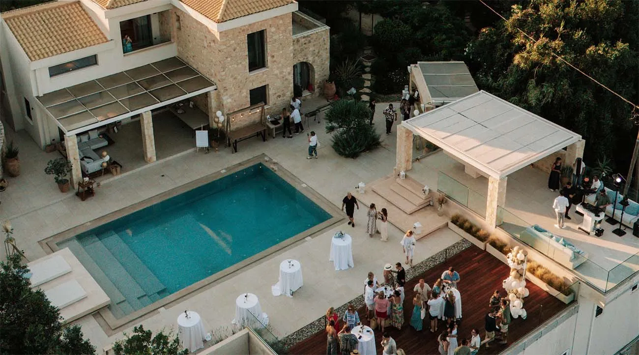 On an elevated patio to the left of the pool, a DJ has transformed the deck into a dance floor that looks out across the hills, while the main seating space has become a buffet area, with bite-sized caprese salads, slow-cooked meats and sumptuous desserts on offer, accompanied by hand-picked wines and signature cocktails. As evening turns to night, an infectious sense of happiness fills the air, the type of tangible joy brought about by good music, food and company.