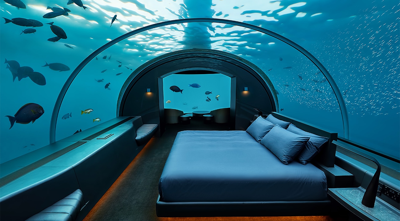 Wow: It’s hard to beat swimming alongside the world’s biggest fish, but the moment I stepped into The Muraka – a two-floor suite home to the Maldives’ first underwater bedroom – it was a close rival, with reef sharks, parrotfish and turtles swimming above the bed like something from a cartoon reel.