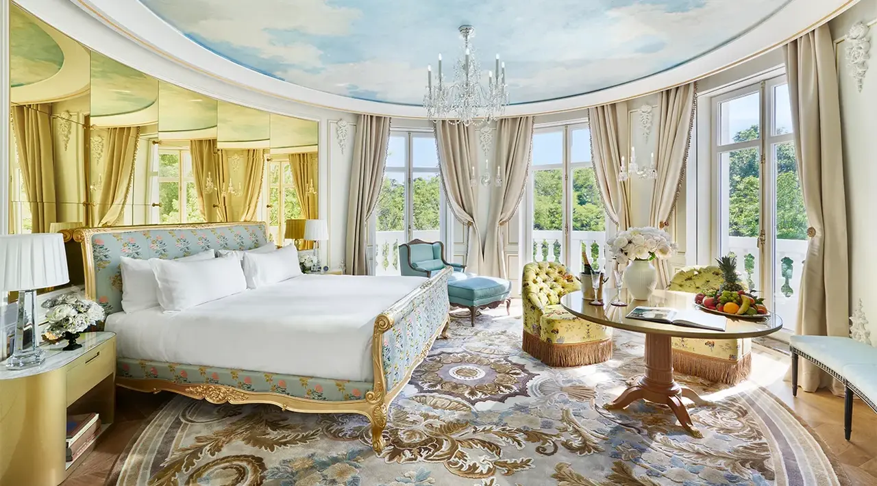 First impressions: The glamour of Mandarin Oriental Ritz is undeniable. From the pavement, the restored belle époque palace is nothing short of majestic – flanked by turrets at either end, the ivory building’s curved structure is centred around a grand main entrance, where friendly, smartly dressed doormen wait to greet us. Inside, the palatial lobby unfolds before me, all high ceilings, marble flooring and gold accents, found everywhere from the staircase bannisters to the canopy of leaves suspended above our heads. Beyond the reception lies the elegant Palm Court, with its glass-domed roof, lush greenery and subtle colour palette of golds and creams. Two-Michelin-starred restaurant Deessa and cocktail bar Pictura are also found just off the lobby, while a plush staircase and set of lifts lead to the other six floors.
