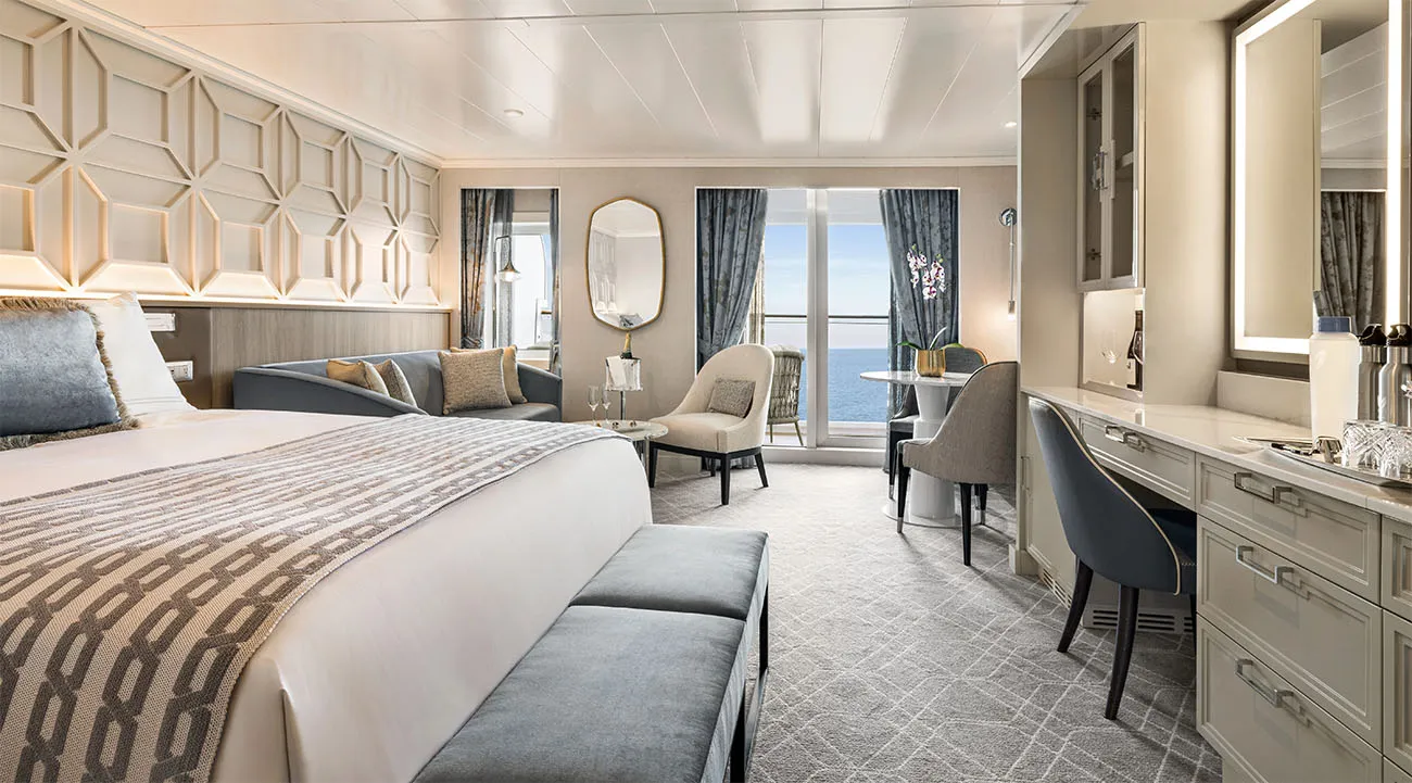 First impressions: The lobby, the ship’s shimmering centrepiece, wowed me immediately. A string quartet added to the refined atmosphere, while friendly staff identified muster points. Decor throughout was sleek with muted tones and warm lighting, creating a calm atmosphere. My Penthouse Suite on deck 11 had a king-sized bed, elegant seating area, balcony and a bottle of prosecco on ice with two glasses waiting for me. The attention to detail was noticeable.