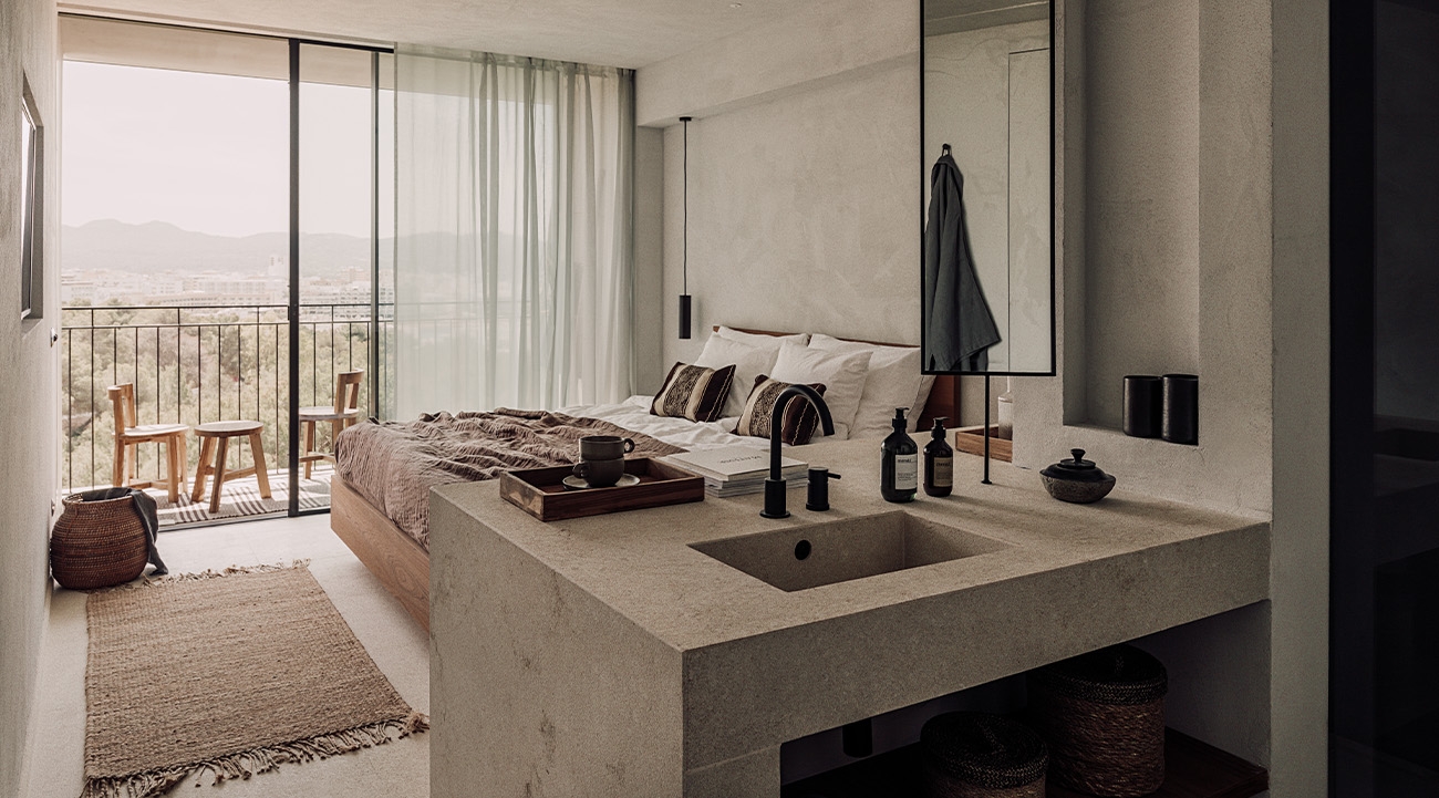 All of that is complemented by neutral tones and huge, bold art from Steve Tepas. The vibe is chilled but buzzy. Think straw-thatched parasols, cocktails galore and slump-worthy daybeds filled with a young and trendy clientele worshipping the sun at the edge of the 50-metre[1]long adult pool. The rooms, many of which overlook the pools, are very minimalist with soft lighting, Marshall speakers and divine Le Labo products.