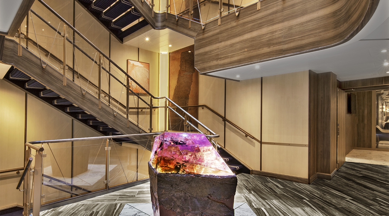 In polar climes, guests will receive a complimentary expedition-grade parka and waterproof backpack custom made by Helly Hansen. Some spaces on board will be known to past Seabourn guests, such as Seabourn Square, a concierge lounge and relaxation area with a library and terrace offering light snacks and a homemade gelato station. A new addition to this ship is the Bow Lounge, which has a series of screens that show everything from the weather forecast to water depth to emulate the captain’s bridge.